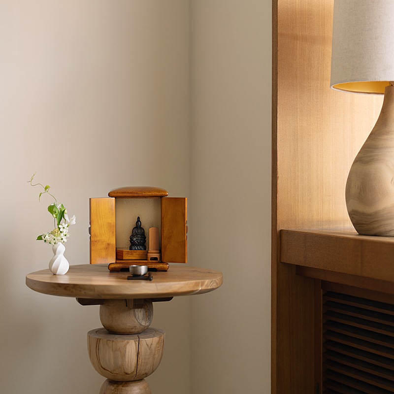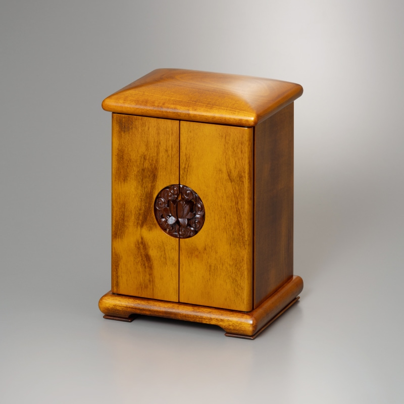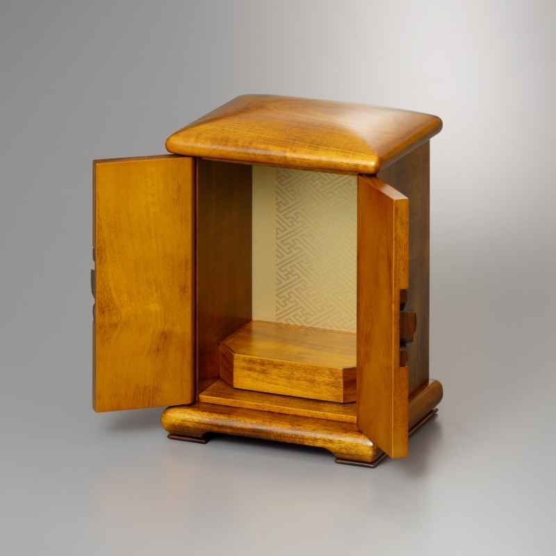 撫でたくなるような丸みのある屋根と、滑らかな国産栃の無垢材が特徴のお厨子です。